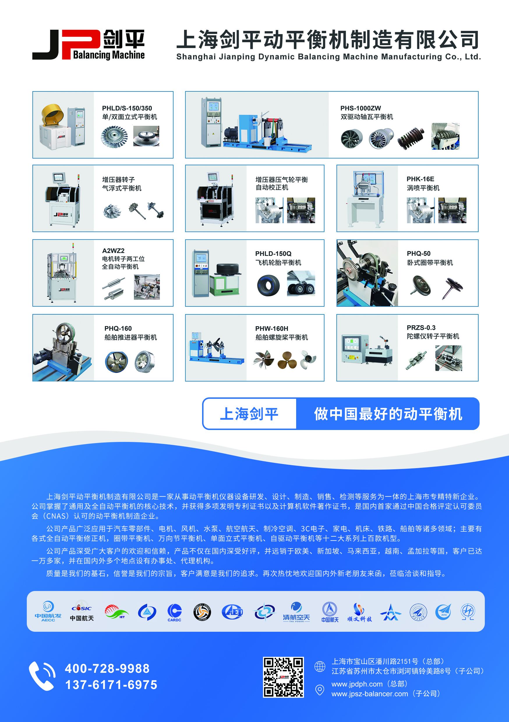 上海剑平动平衡机制造有限公司是一家从事动平衡机仪器设备研发、设计、制造、销售、检测等服务为一体的上海市专精