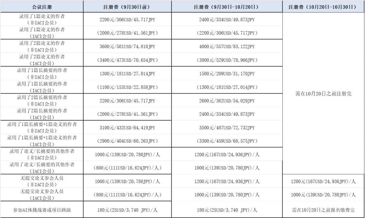 - For participants without papers (by default, agreeing to join IACI), the registration fee is RMB 800.